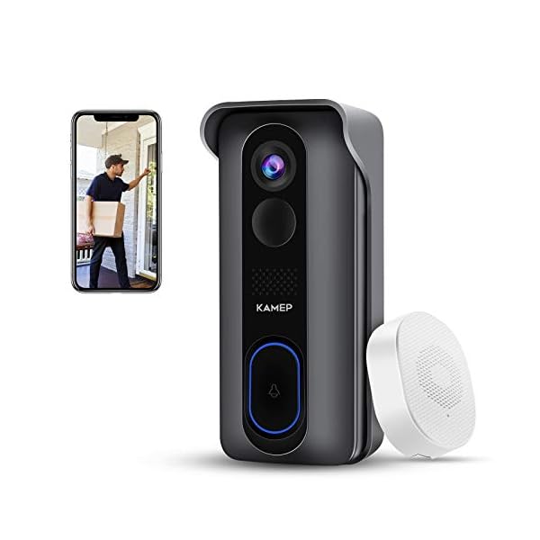 ❤【1080P Full HD & 2-Way Audio】The KAMEP doorbell camera has a 166° wide-angle lens and 120° human detection range, providing the best angle of view in motion detection performance. You can use the mobile app to talk to the person who rings the doorbell in real-time, or a pre-recorded 30-second voice message to quickly respond for easy convenience.