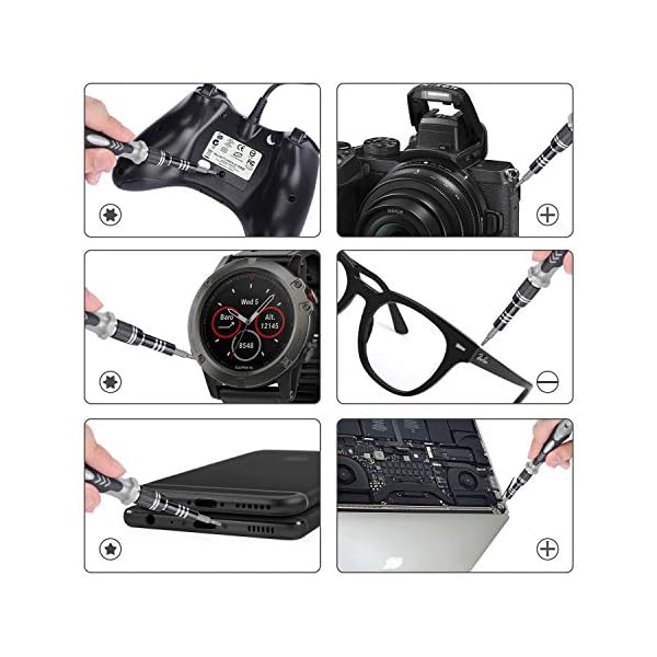 🔨【Electronic Screwdriver Kit Available For Cell Phones & Laptop Accessories】 The screwdriver flexible extension can be used for narrow corners. It is also equipped with anti-static tweezers and non-slip silicone handles. It is suitable for electronics, iPhones, watch, glasses, laptops,jewelers, and home appliances, such as televisions and air conditioners. We also prepared three special driver bits T6, T8, and T10 hollow plum, which are available for repairing game machines such as ps4.